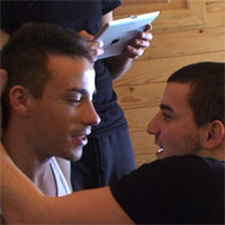 Ce matin Thibault est cuisiné par ses coloc' ! Ils vont lui démouler des Flamby sur le dos et les fesses ! Forcément ça part en cacahuète... Couvert de bouffe il monte avec Lucas se rincer. Les deux bogoss ne vont pas faire que prendre une douche... Ensuite bien que Tédi semble ne pas apprécier spécialement Davyd devant les autres il se laisse aller avec lui dès qu'ils sont seuls le soir... Enfin Davyd relève le défit d'embrasser tous les autres mecs réunis pour l'occasion dans la chambre.