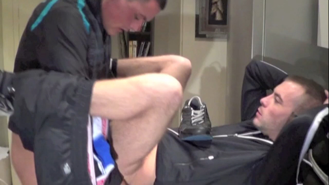 Matte comment JORDAN KIFFEUR se fait casser le cul par GREG, en Jogging, le nez dans les skets.. Fan d'odeurs, tu vas kiffer comment JORDAN décrasse et sniff les TN de son boss.