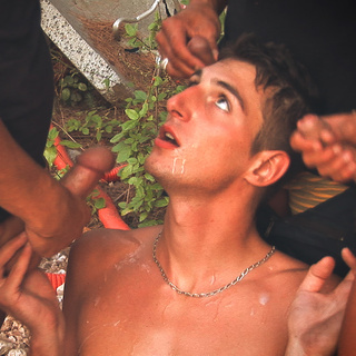 Kevin est un jeune mec de 19 ans qui vient de terminer sa formation en vue de devenir pompier professionnel. Cependant, avant d’être intégré au service, il doit passer une dernière étape qui a pour but de tester son obéissance et sa solidarité vis-à-vis de ses collègues. Accompagné de deux autres pompiers, John Activia et Steph Killer, le chef de la caserne, Malik TN, l’entraîne donc dans un terrain vague et il lui ordonne directement de se mettre à genoux. Devant lui, ses deux futurs collègues sortent leur queue et Kevin sait ce qui lui reste à faire. Il les pompe goulument sous les yeux du chef. C’est ensuite au tour de Malik de dégainer son impressionnante lance de 23 cm que Kevin s’empresse d’avaler ! Pendant ce temps, tout en se touchant, les deux autres collègues commencent à doigter le cul serré de la nouvelle recrue à renfort de salive. Après avoir bien pompé ses trois futurs collègues qui lui baisent la gueule à tour de rôle, enfonçant leur grosse queue au fond de sa gorge, cette nouvelle recrue bien soumise se retrouve à quatre pattes sur un vieux pneu. C’est le chef, Malik, qui a le privilège de s’occuper du petit cul de Kevin, pendant que les deux autres collègues se sucent non loin de là. Si les débuts s’avèrent un peu difficiles – car le jeune pompier en herbe a le cul très serré – il se dilate assez rapidement et Kevin se soumet aux coups de queue du beau Malik, qui se font de plus en plus puissants. L’étalon XXL n’épargne pas la nouvelle recrue… Il faut bien tester son endurance face à l’adversité ! Il le baise bien à fond pendant que les collègues profitent de sa bouche chaude et humide. On peut dire que ce petit-là sait être multitâche… Enfin, pour la dernière étape du test, Malik lui ordonne de se mettre de nouveau à genoux et il reçoit l’adoubement ultime de la part de ses collègues et de son supérieur : une triple éjaculation sur la gueule d’ange. Maintenant c’est officiel, il fait partie de l’équipe ! A défaut d’un baptême du feu, le jeune Kevin aura eu droit à un baptême du sperme tout aussi chaud…