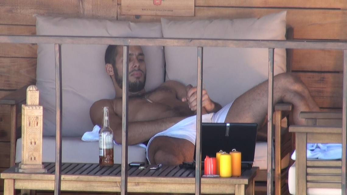 J'étais en vacances à Barcelonette, en provence et j'avais super chaud ! je suis sorti dehors pour fumer ma clope et là, tenez vous bien, un super beau mec était en train de boire sa despe sur sa terasse, à poil dehors !! J'étais ouf !! Un super beau rebeu de 22 ans trop trop sexy !!! Sa copine était en train de prendre le soleil et lui, tranquille se masturbait en train de la mater ! Mon voisin a commencé à se branler et il avait une bite de ouf !! au moins 21 cm !!! Ca m'a trop excité, je me suis planqué derrière le toit de la terasse et j'ai commencé à le filmer du début à la fin !!! J'ai t'ai ramené la vidéo, mate ça. Le mec s'apelle Pedro PALIZA.. et crois moi, quand tu verras le morceau qu'il a entre les jambes, tu aura envie d'aller à Barcelonette, pour sucer de la quequette !